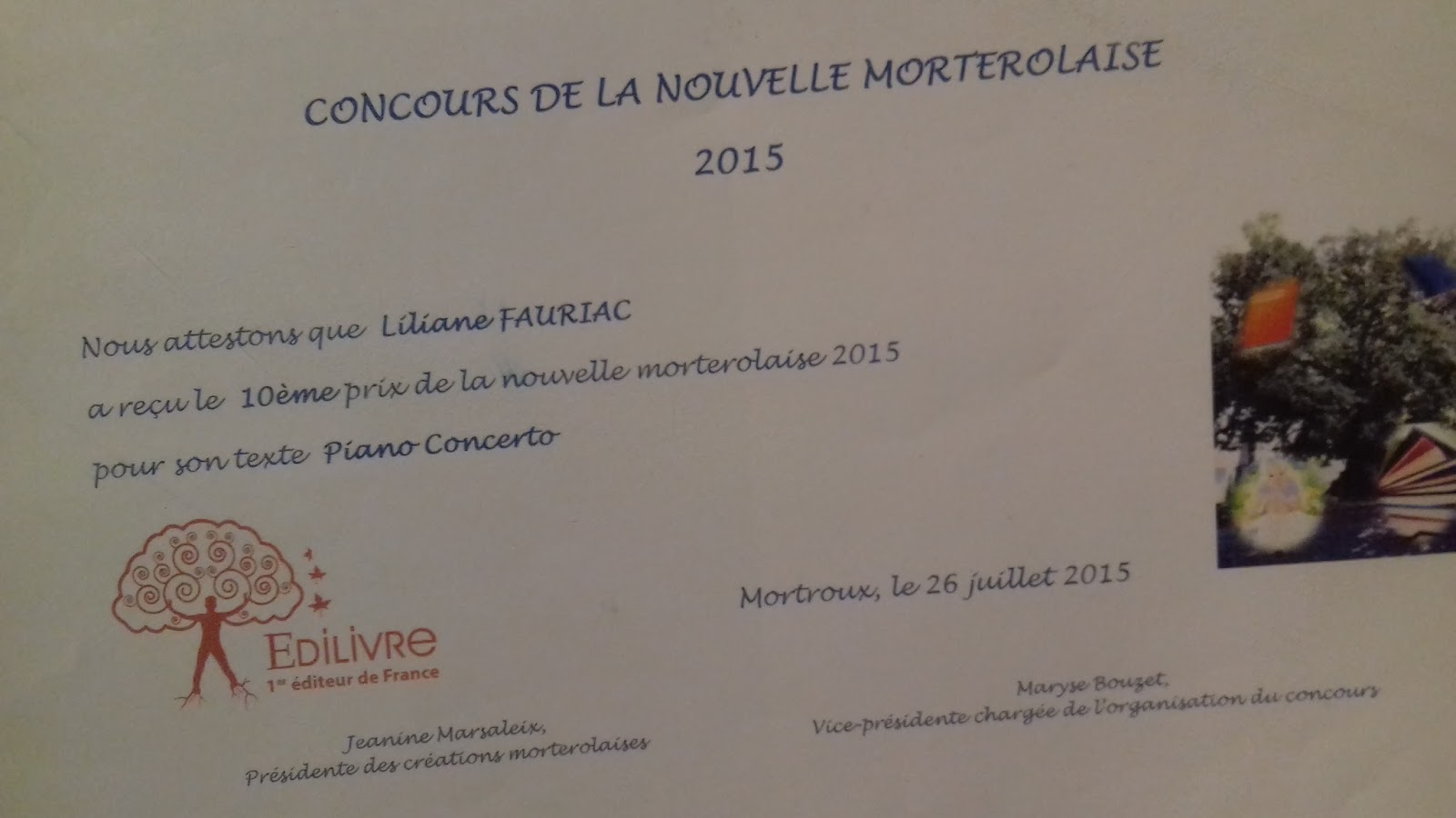 Le 29 juillet 2018: Premier prix au concours de nouvelles des Créations morterolaises pour LA VENGEANCE DE CÉSAR
